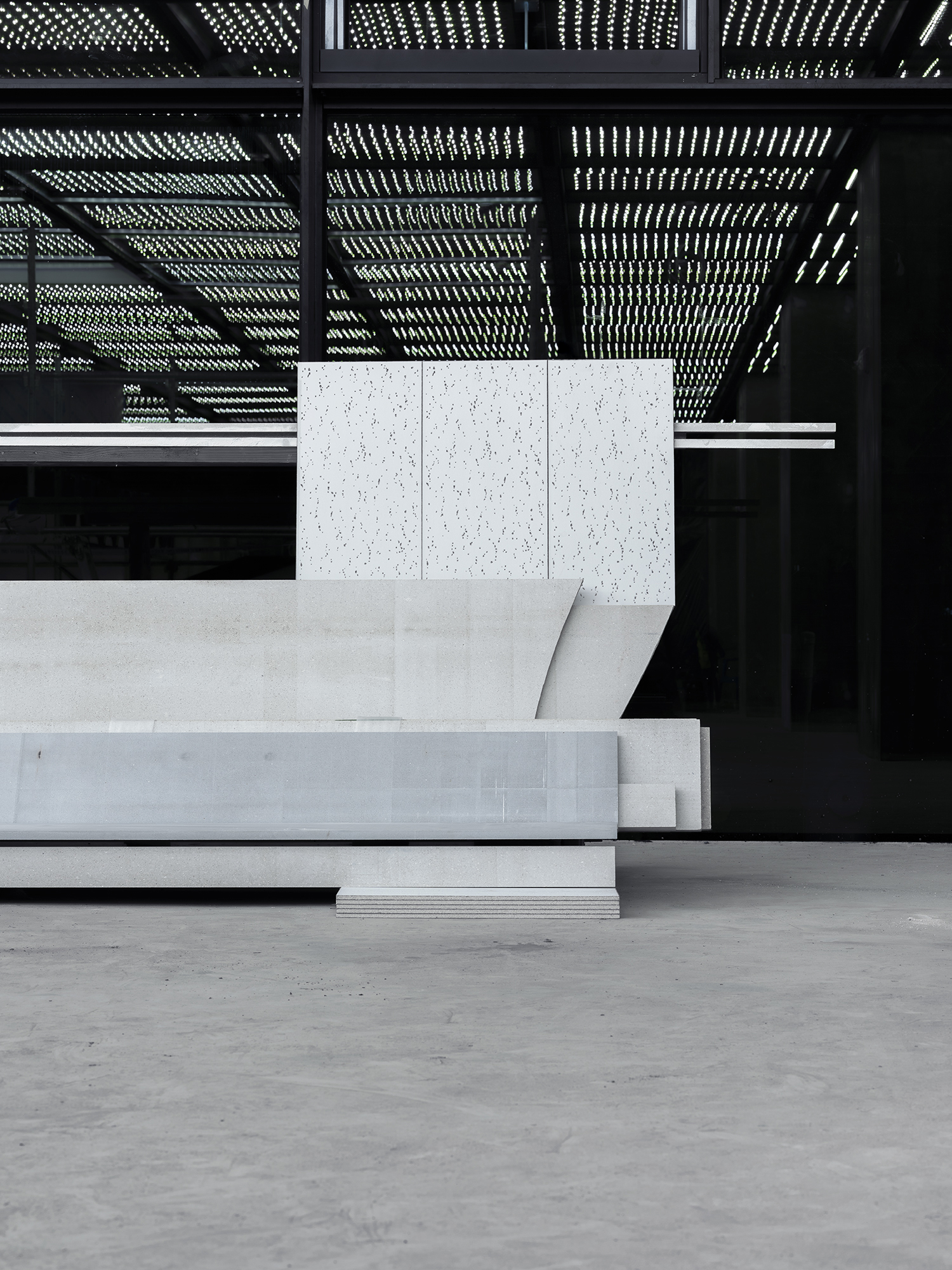 Reconstruct (2020~2021) was carried out at a site where a modern building was being remodeled. For this work, I filmed the process of the previous walls being covered over with new architectural materials as part of the restoration. The process of remodeling modern buildings involves preserving the existing architectural style while using modern methods to boost functional efficiency. Such sites juxtapose the coarse surfaces of old structures with the sleekness of state-of-the-art architectural materials. I gathered construction materials from the restoration to install in a two-dimensional arrangement on the site, while recording in photographs as the three-dimensional architectural structure transformed into a modern space with a two-dimensional aesthetic through the remodeling process.