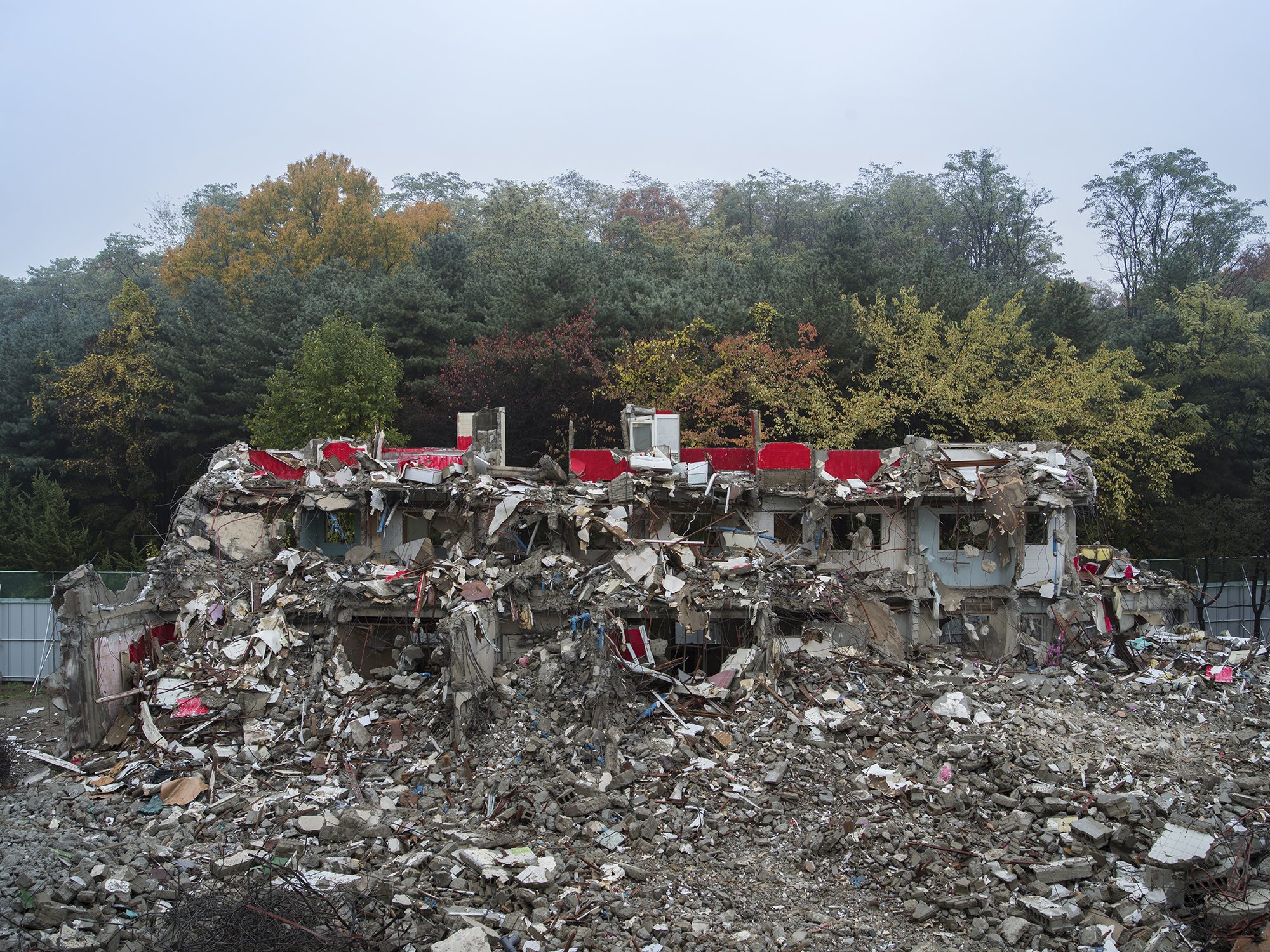 <철거현장 Demolition Site>, <재건축현장 Reconstruction Site>(2013~2015)은 철거현장에서 건축물이 소멸하는 과정에 침투하여 건축물 내부를 빨간색 페인트로 칠하고 그것이 소멸되는 과정을 사진으로 기록하였다.